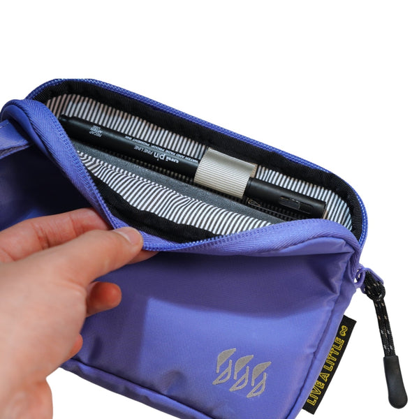 Our sleek passport pouch is designed to hold all your daily essentials and your passport when traveling! While remaining slim and lightweight, with our signature water-resistant Nylon material, your valuables stay safe and dry, while the adjustable strap allows for a perfect, comfortable fit. Although it is super slim, it is designed with one main zipper compartment, two inner pockets, and an open pocket at the back!